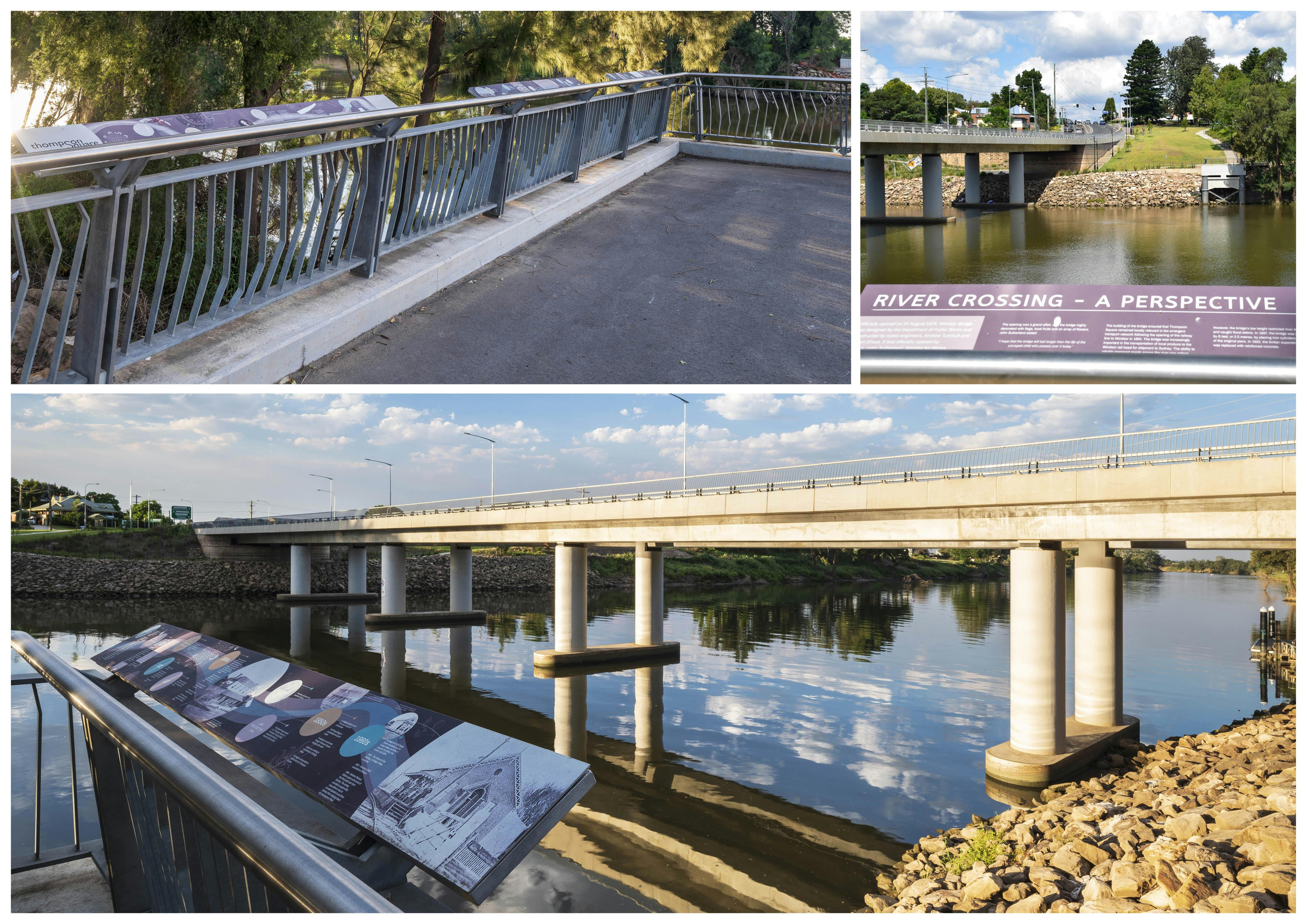 Amongst the benefits are an increase in usable green space (500 sqm), continuous connection from the top of Thompson Square to the river, enhanced views to the river and a viewing platform using the southern span, pier and abutment of the original bridge to acknowledge its heritage significance. A northern interpretation node also acknowledges the heritage and importance of the original Windsor Bridge and earlier punt operation.