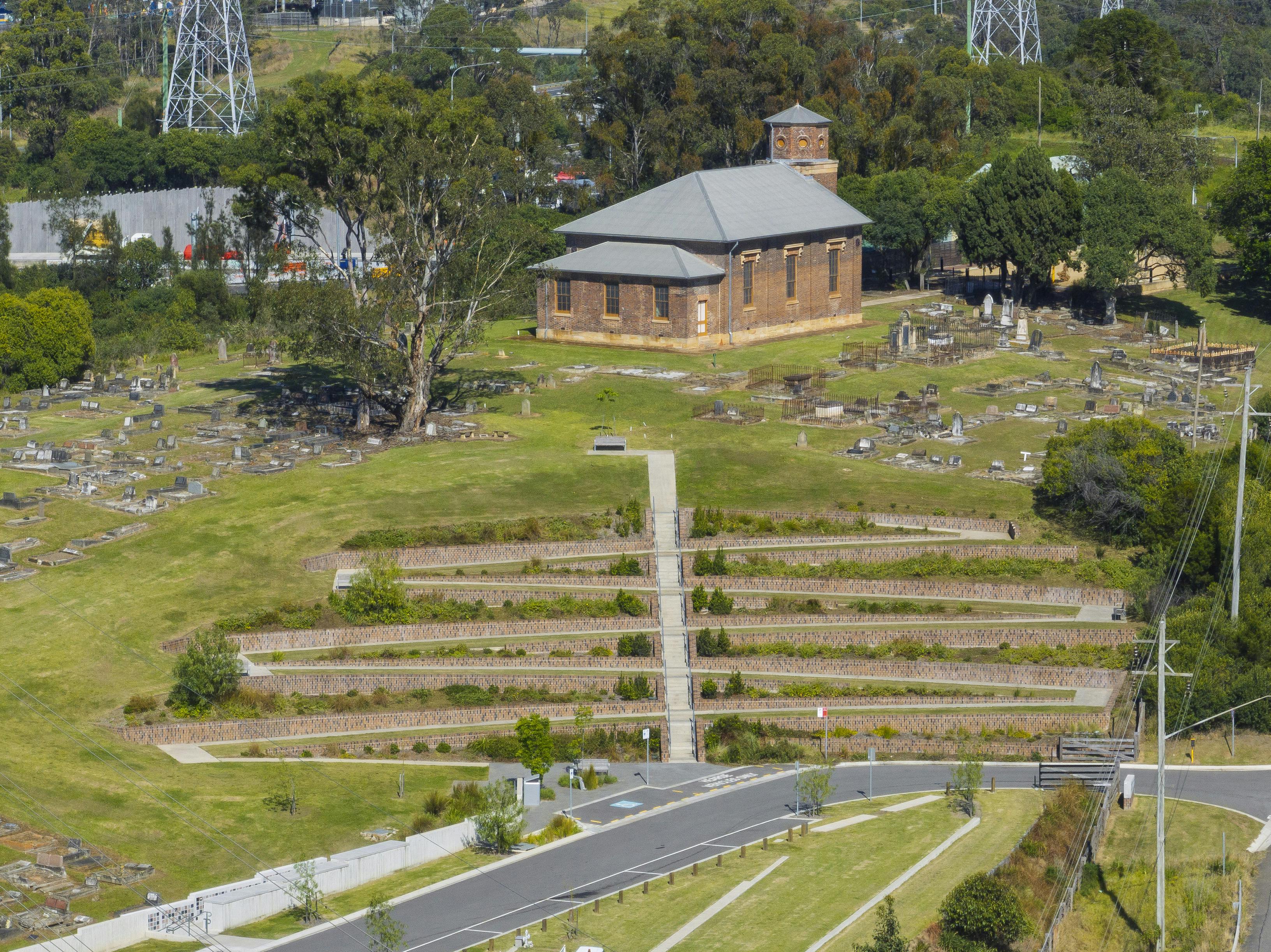 The character of the existing burials within St Bartholomew’s Cemetery consists predominantly of monumental graves and some above ground vaults, kerbstones, and cast-iron fences, defining the graves around the Church. The intention of the new burial areas has considered the alignment of the existing cemetery, particularly for the alignment of the new access road, whilst identifying the new burials for the heritage areas. Diverse cultural burial approaches and memorialisation are catered for in the Cemetery layout. This reflects Blacktown’s culturally diverse population.