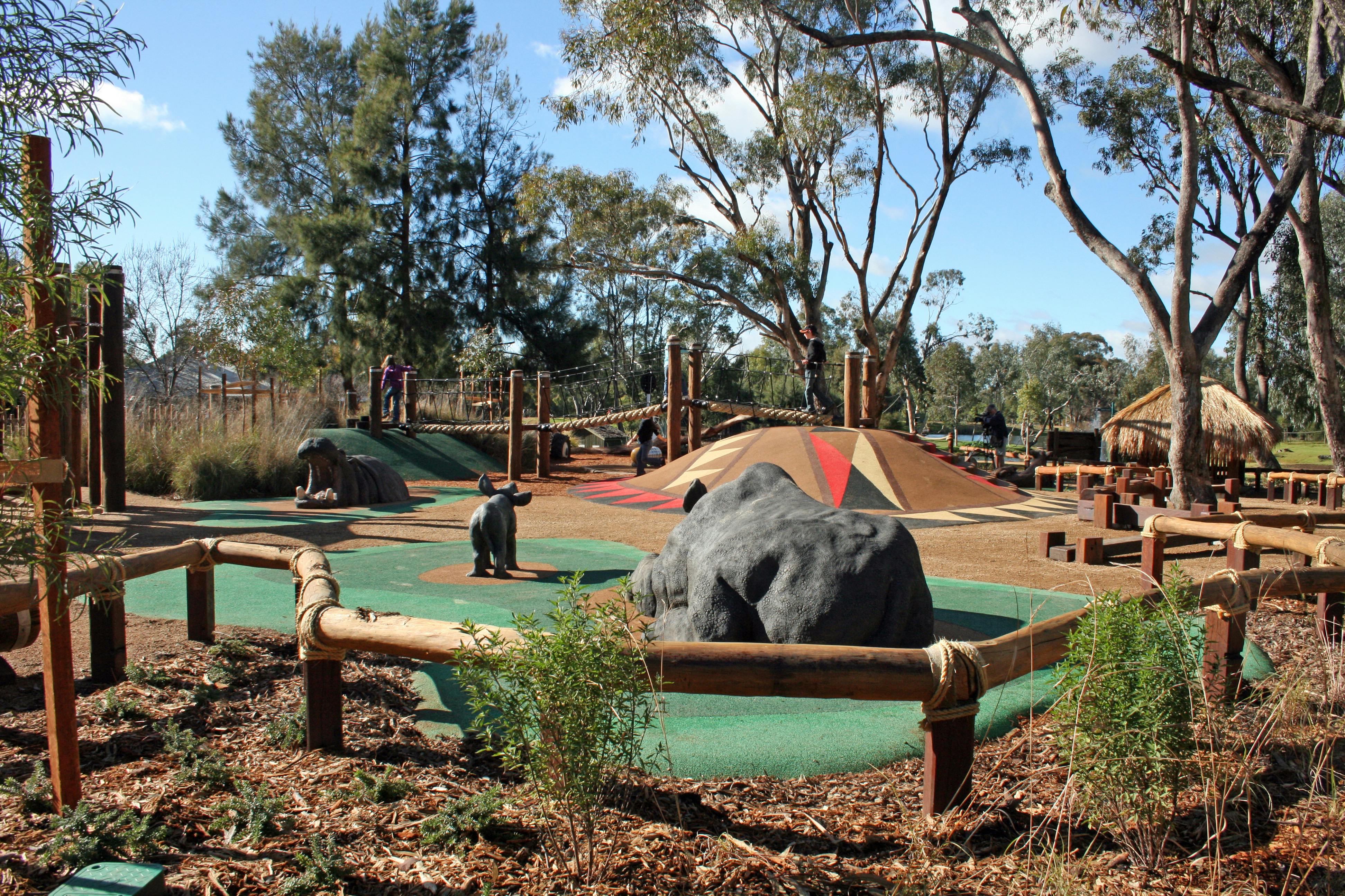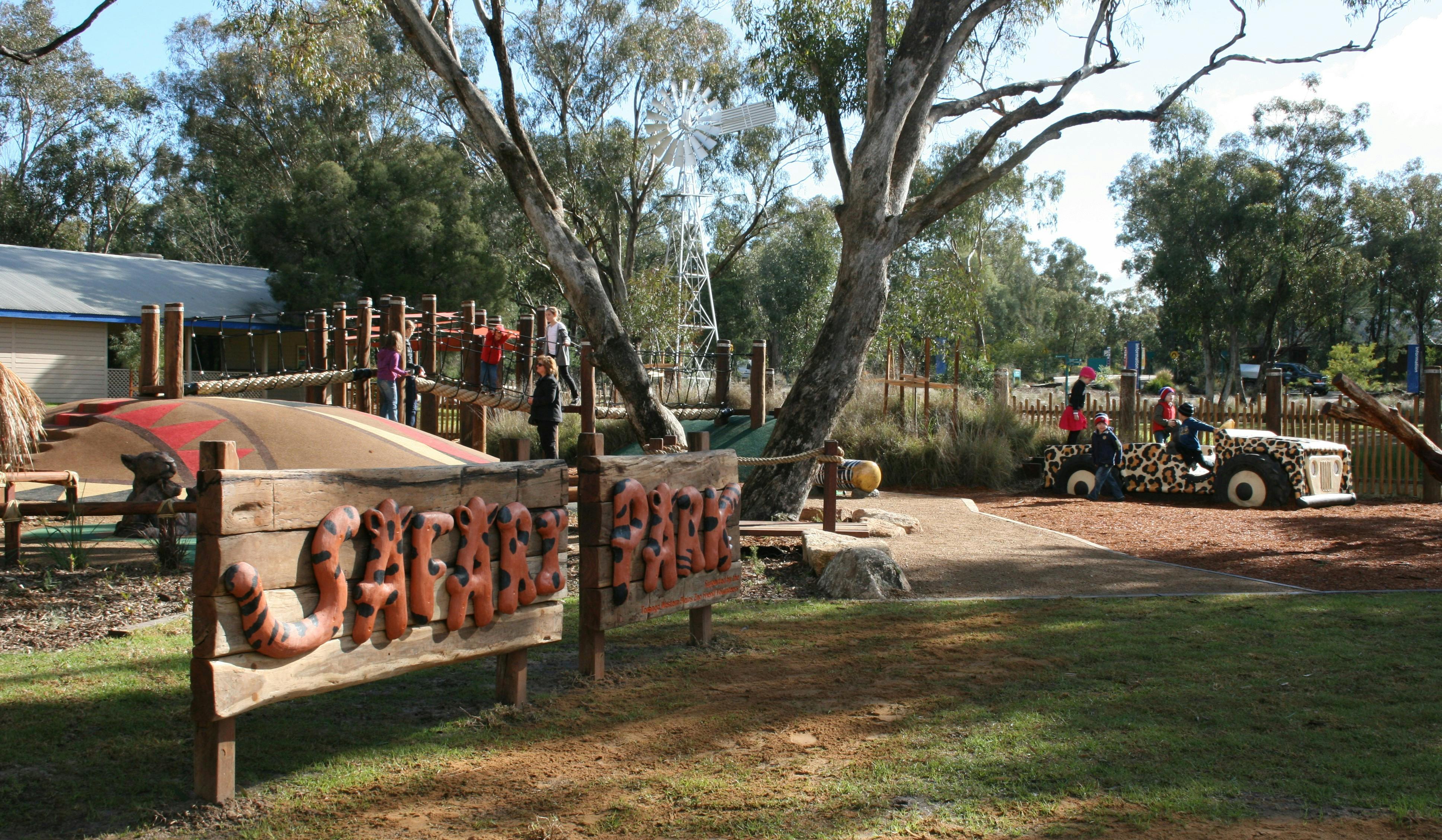 Inspired by a combination of African themes and the Western NSW landscape, the design merges the themes of the Savannah landscape, “Africa in the backyard”, and the landscape of the central plains to create a new landscape direction. Other key moves include interception of overland flow into planted bio-swales, logical vehicle and pedestrian circulation, better utilisation of public space and vistas to existing features, interpretive playground facilities, and integration of African, Aboriginal and Western NSW themes.