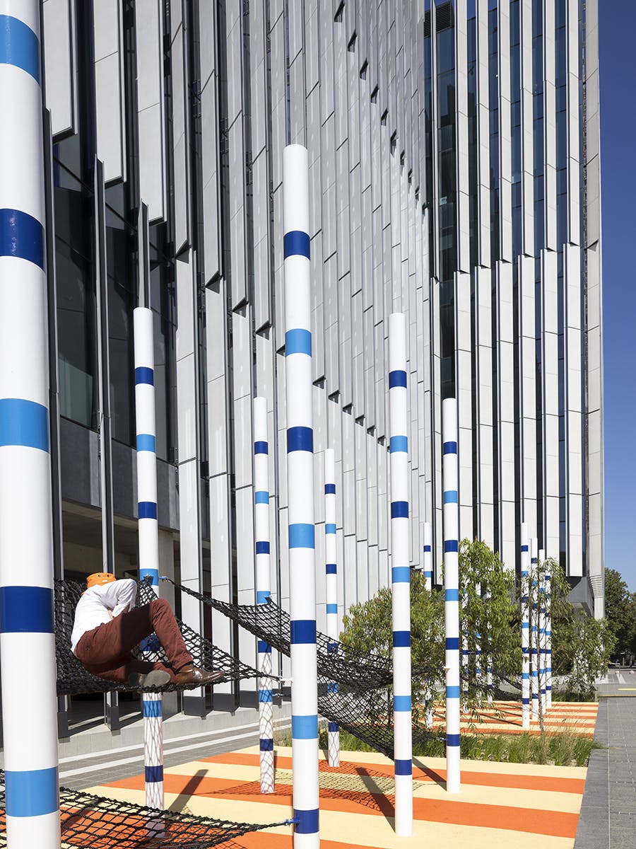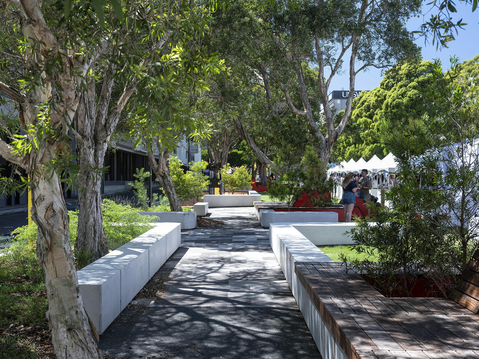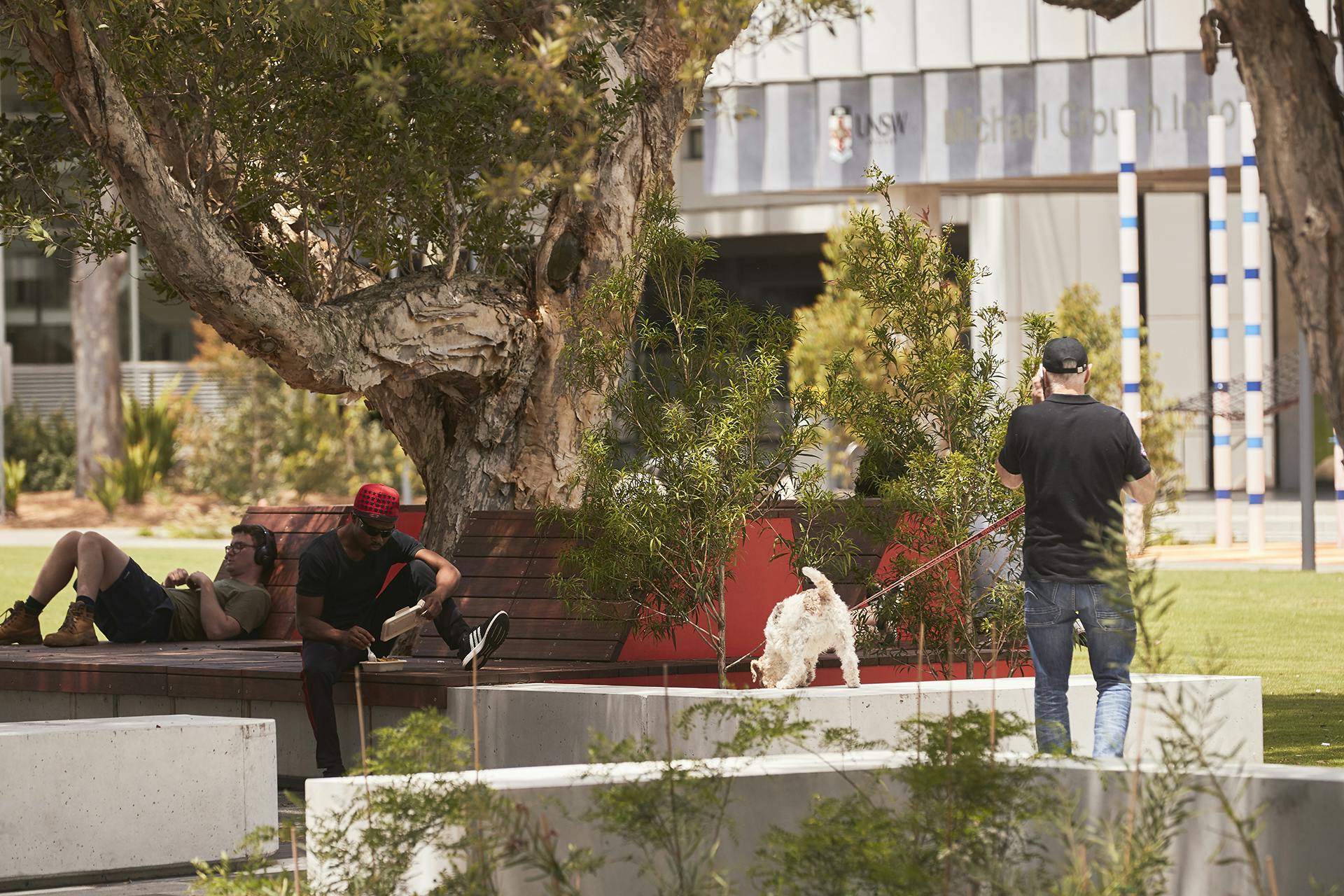 The objective of this expanded and revitalised park is not only to create an attractive and iconic place but also contribute to the UNSW public health and wellbeing by providing a public realm where the community will interact, socialise and recharge.