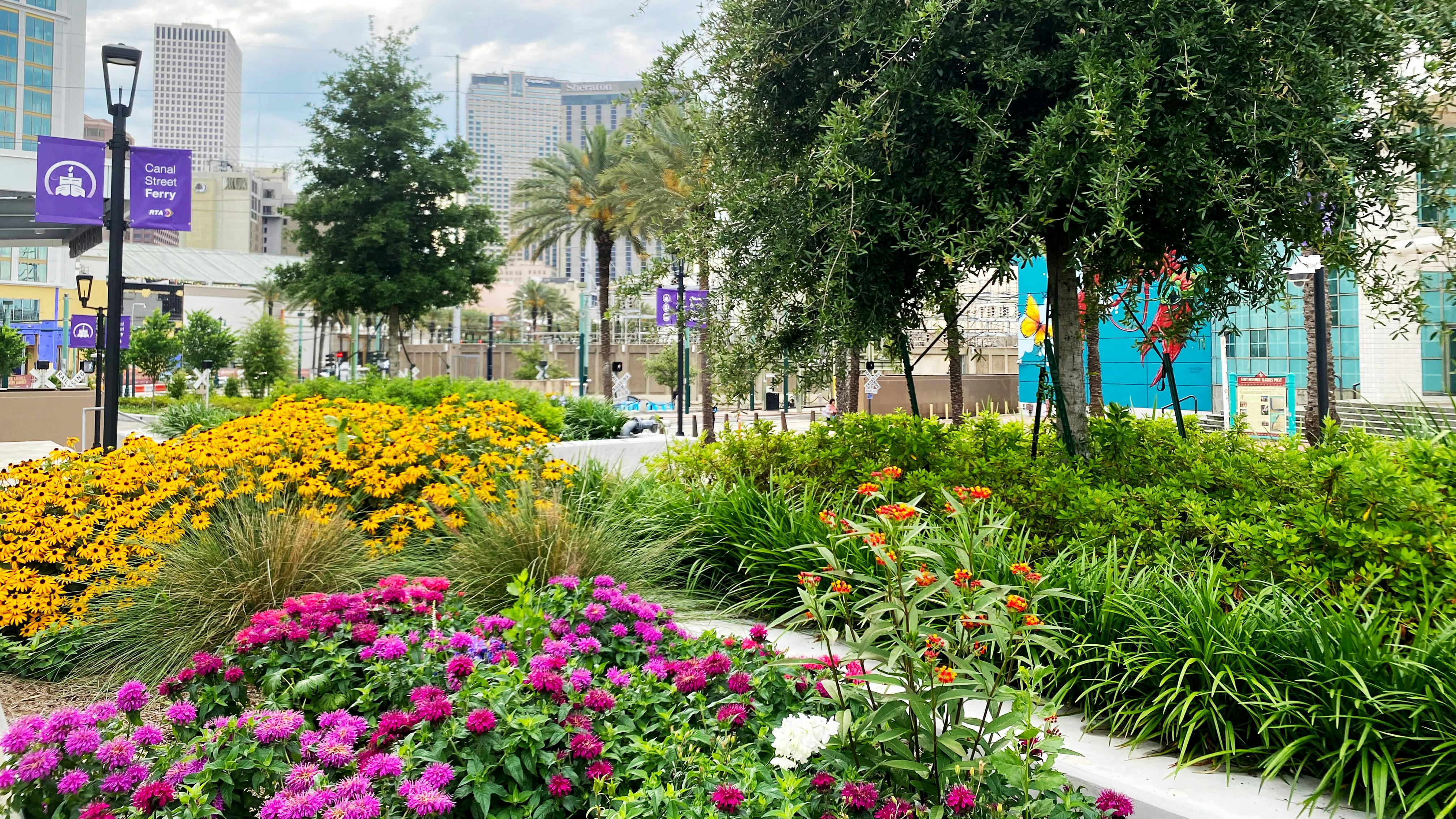The renovations include a smaller, modern, ADA-compliant terminal and pedestrian bridge and a vibrant focal point of regionally native grasses, perennials and shrubs that create urban habitat for butterflies and pollinators. The terminal now connects Spanish Plaza, Woldenberg Park and all of the site amenities into a cohesive pedestrian waterfront experience and re-envisions the connectivity between all transit modes to provide safe, reliable connections for locals and visitors alike.