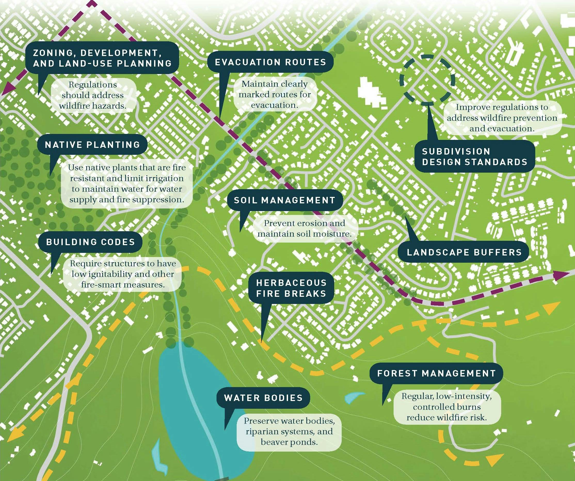 Community-wide resilient strategies for reducing harm caused by wildfire events.