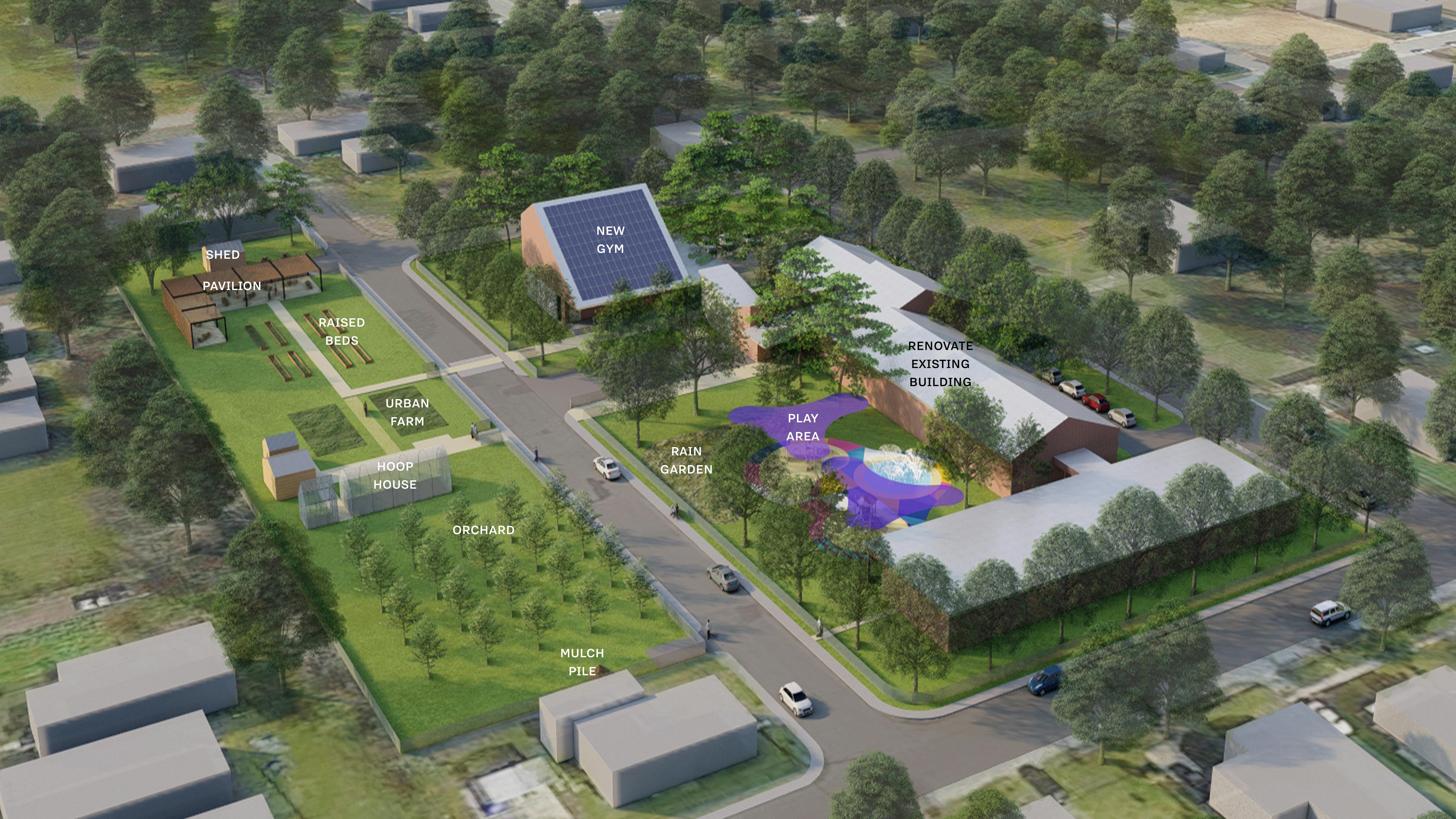 Aerial view of the future OMYDC Climate Resilience Center campus