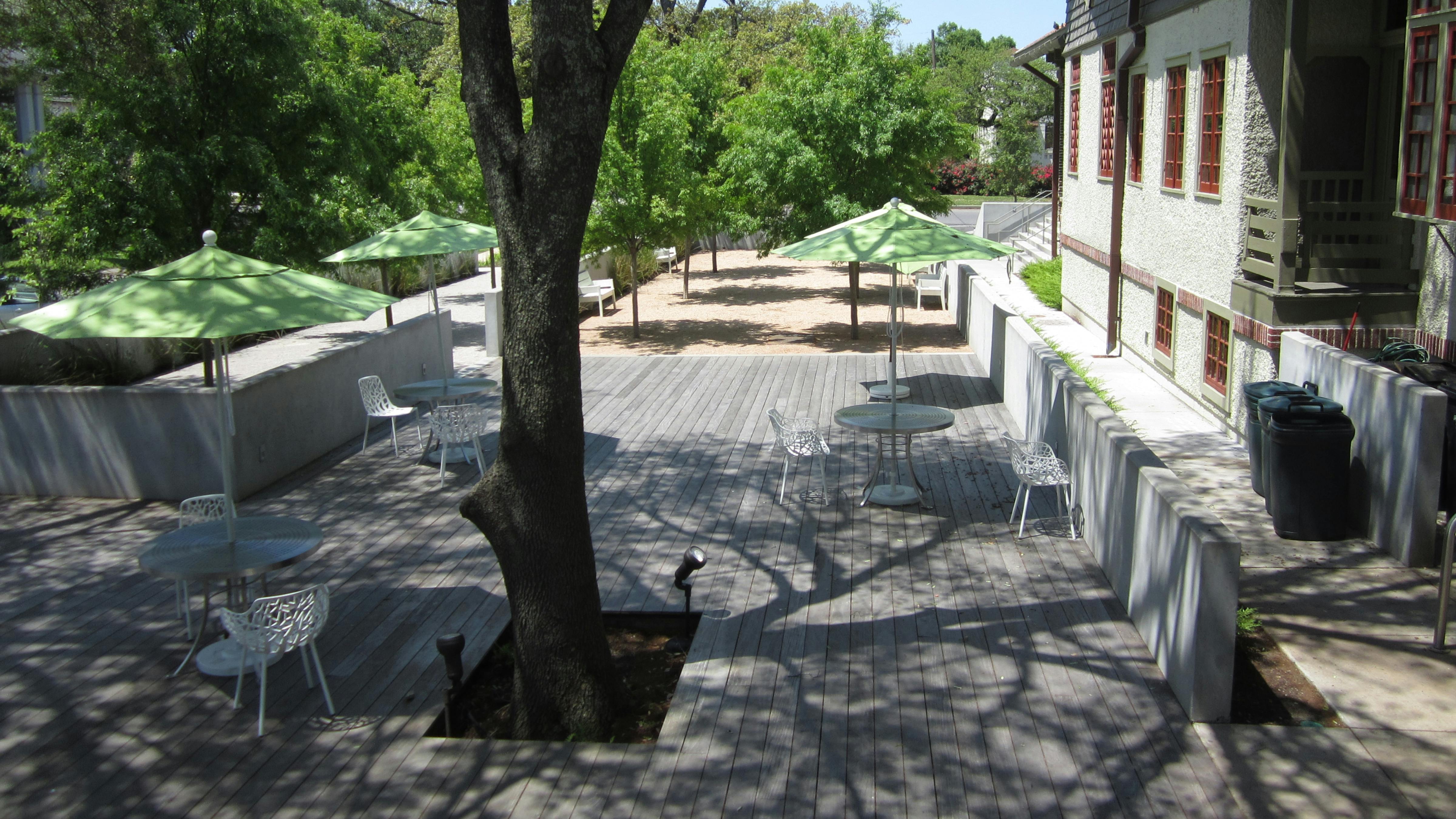 SMM provided the landscape architectural design for the library renovations. The front of the building features a learning wetland garden which filters and cleans water coming from the roof of the building. The back “reading room” courtyard features a wood deck around existing trees and decomposed granite courtyards.