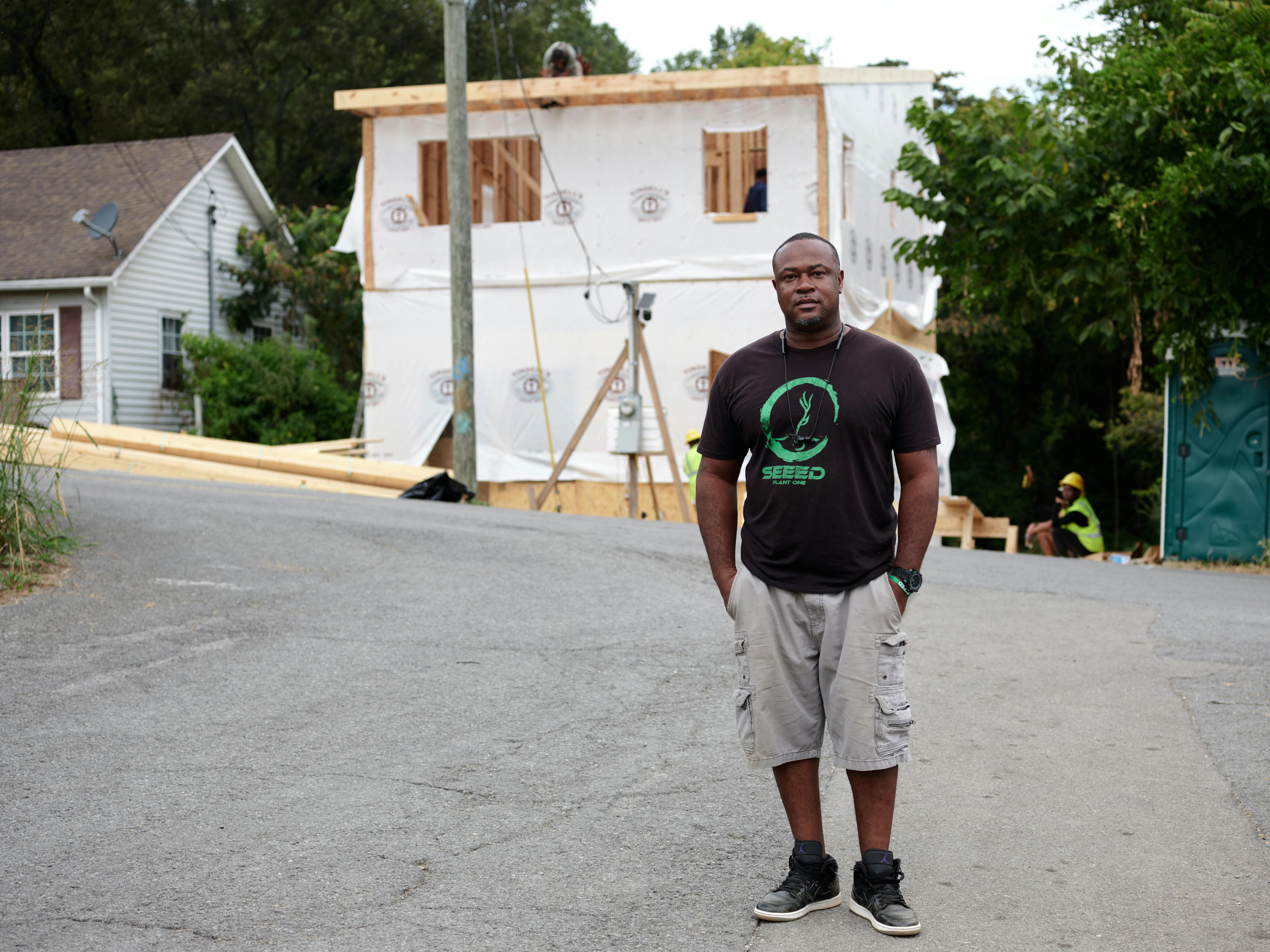 Jerome Johnson, photographed at the construction site of one of SEEED's solar homes.