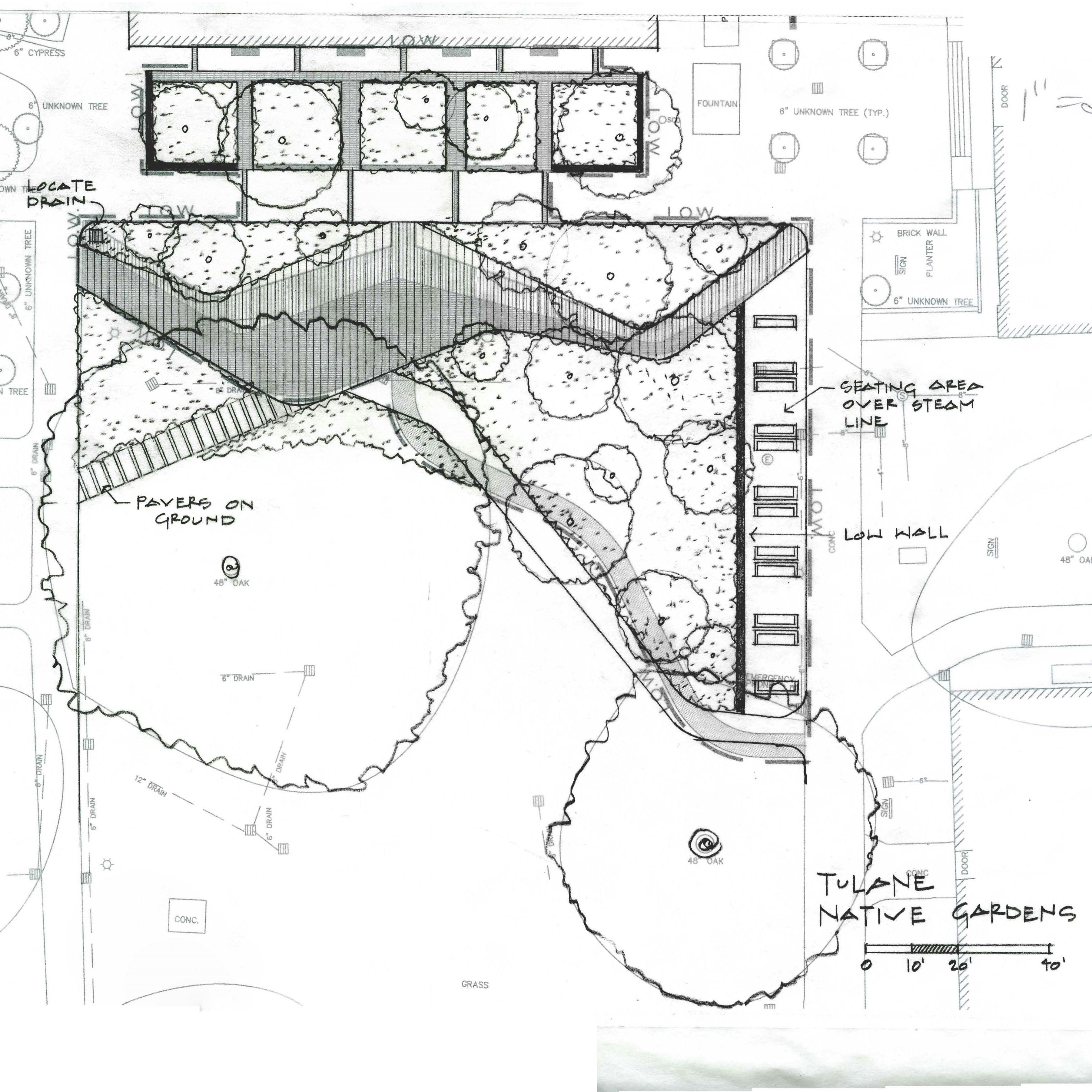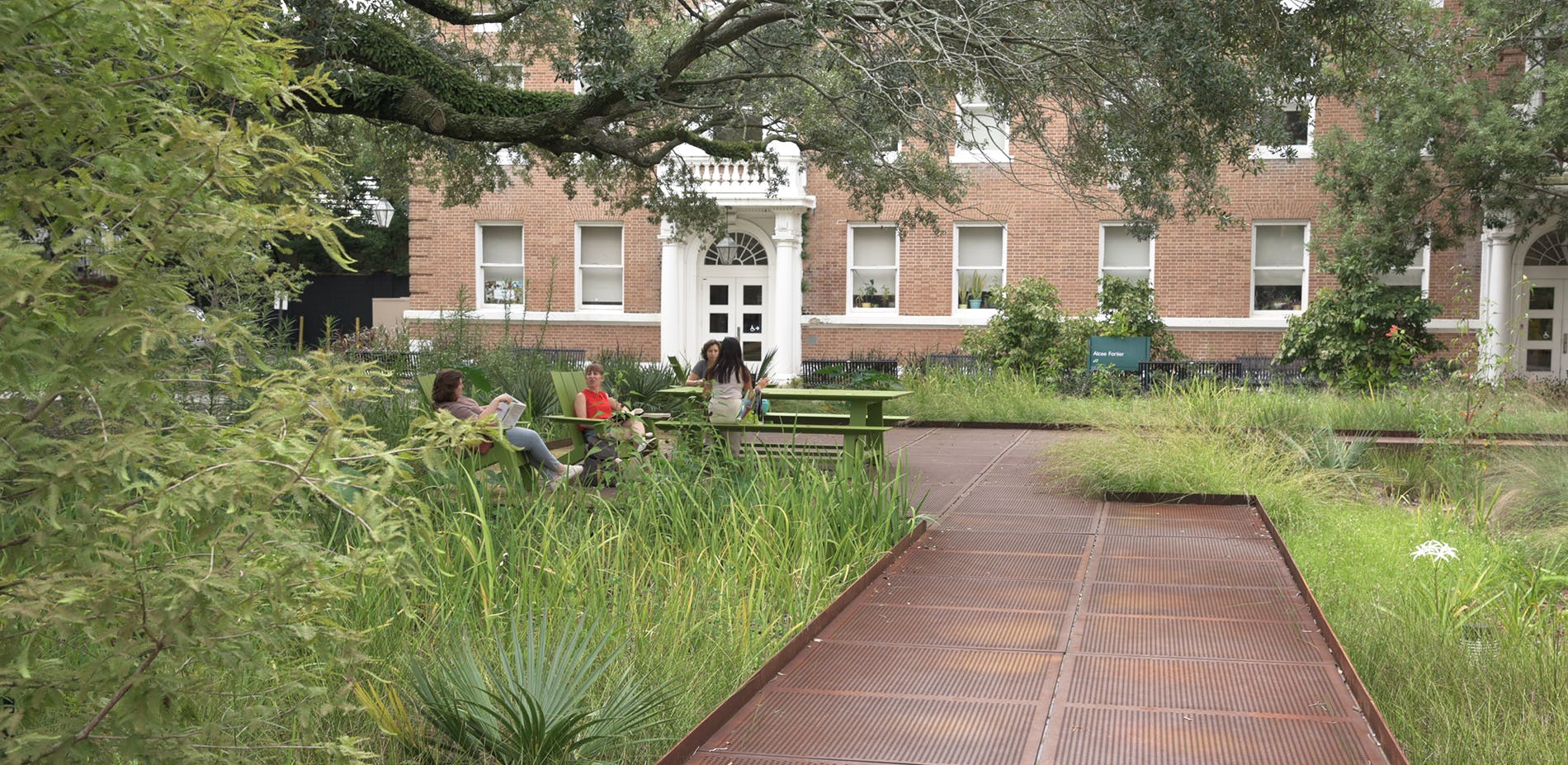 The Tulane University Native Gardens sits at the heart of the scientific community at Tulane University as a showcase of stormwater management, the use of native plants to create habitat, and a reflective space for students, faculty, and staff. The project was developed during the Tulane 5-Year Stormwater Master Planning process that identified several strategic projects that would address stormwater management campus-wide.